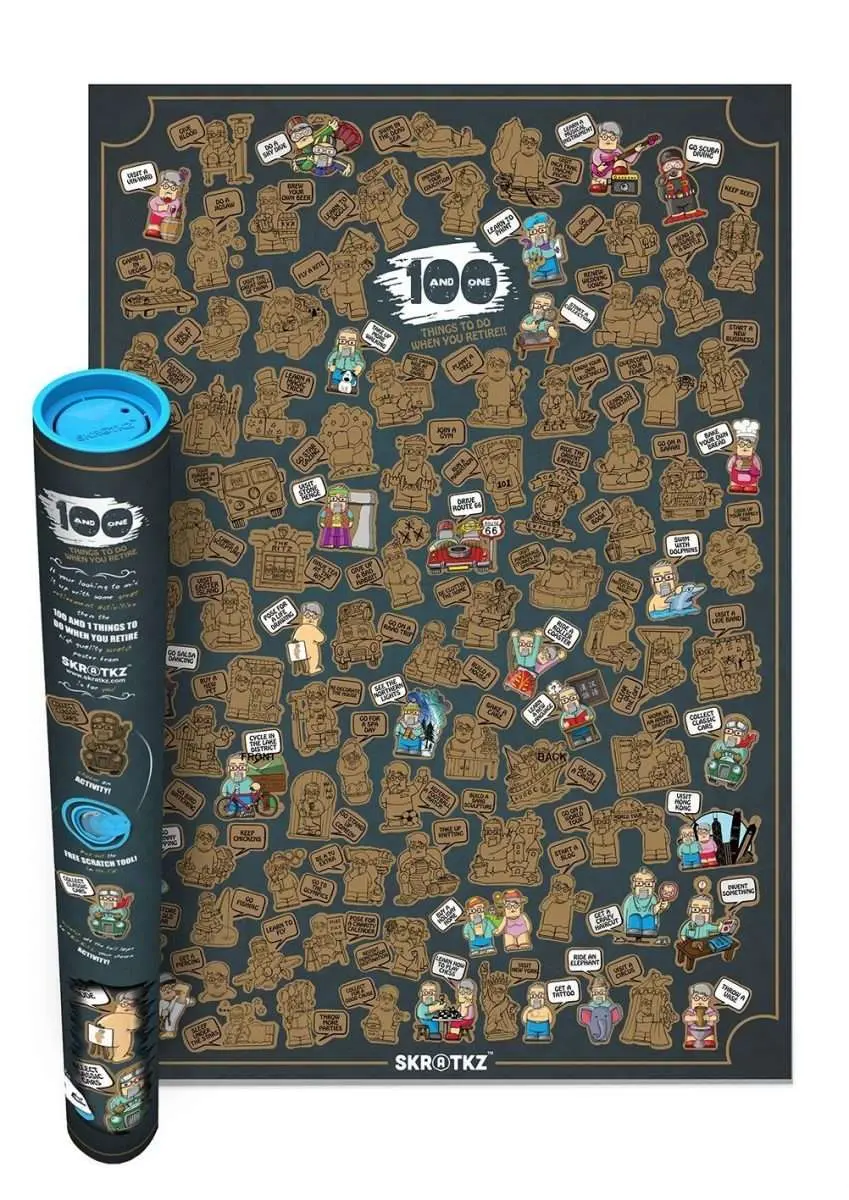 Poster Skrapa fram 101 Saker att göra innan du blir Pensionär. Denna skrapaffisch är perfekt för dig som vill få ut det mesta av livet! Utforska, lär dig nya saker och väx som människa medan du utmanar dig själv att ta dig ur din comfort zone och istället belönas med några av de bästa upplevelser världen har att erbjuda!