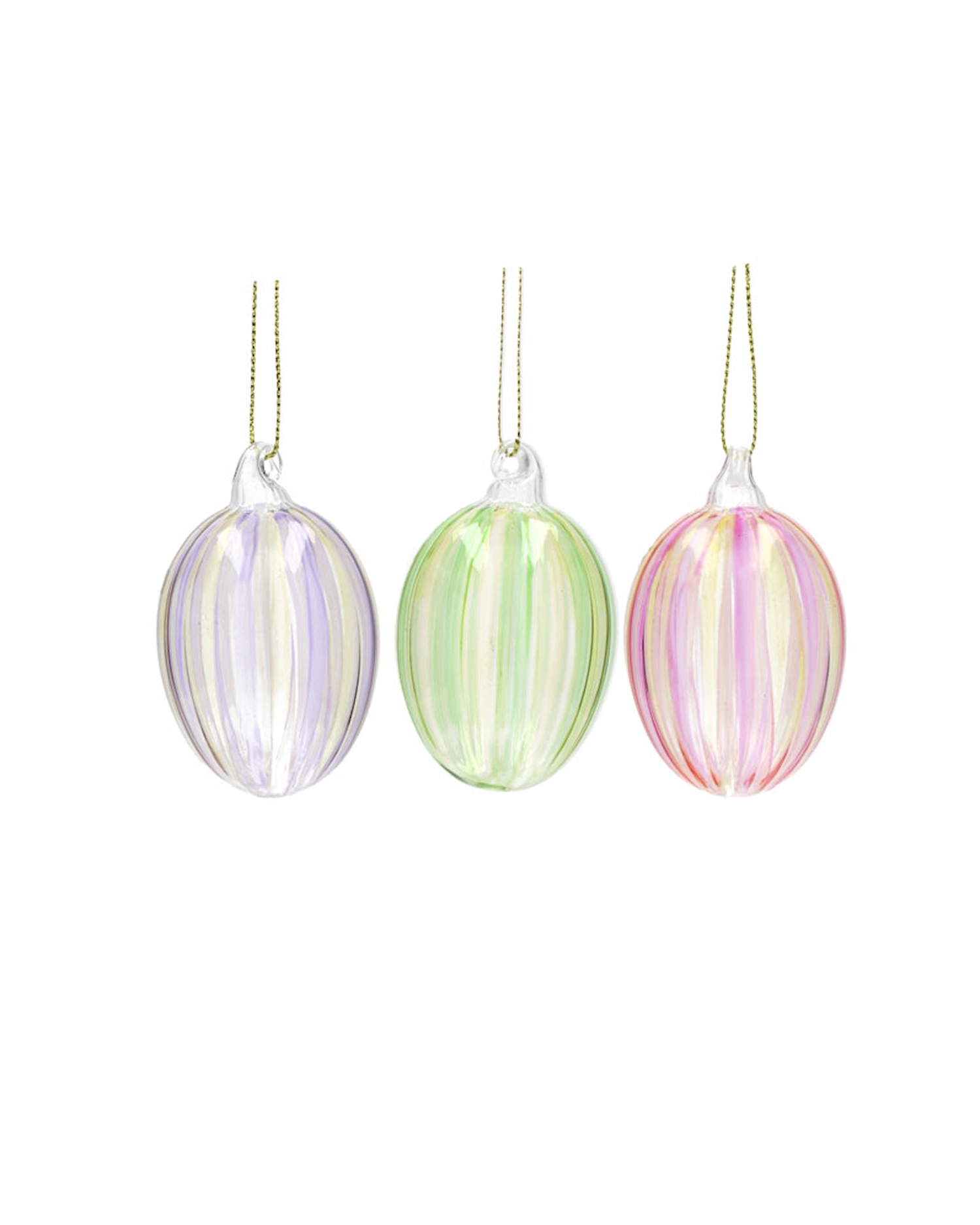 Glasägg rosa i glas med randigt mönster och upphängningssnöre. En stilren påsk- eller inredningsdetalj som ger färg och finess.