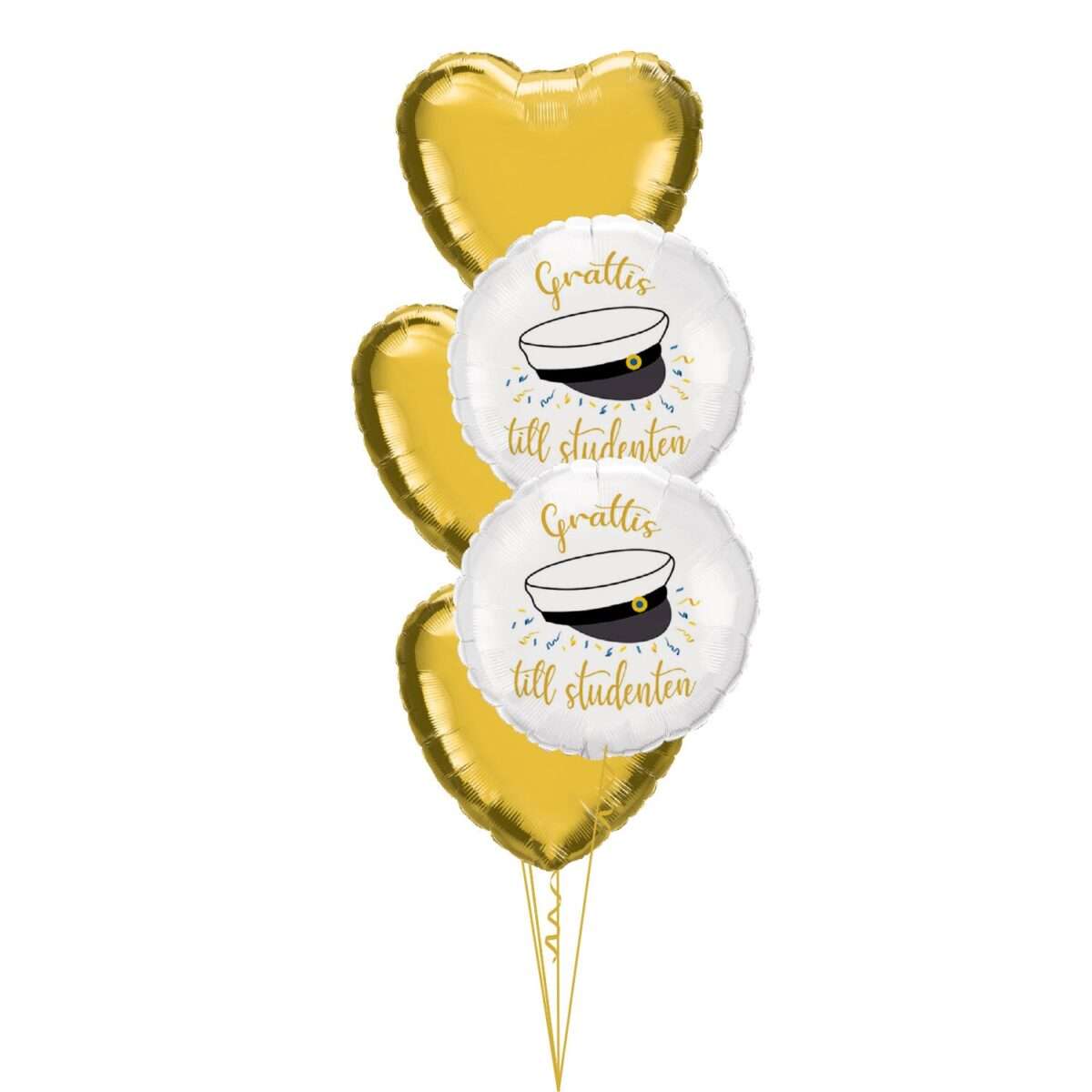 Denna gyllene hjärtballong är ett måste för att fira studenten med stil och glamour. Den hållbara konstruktionen gör att du kan njuta av din fest utan bekymmer, och när kvällen är slut kan ballongen deflateras och sparas som ett minne från den speciella dagen.