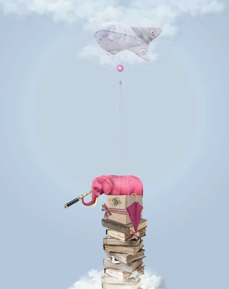 Barnposter – Rosa Elefant på böcker barnposter som kan beställas i flera olika storlekar.