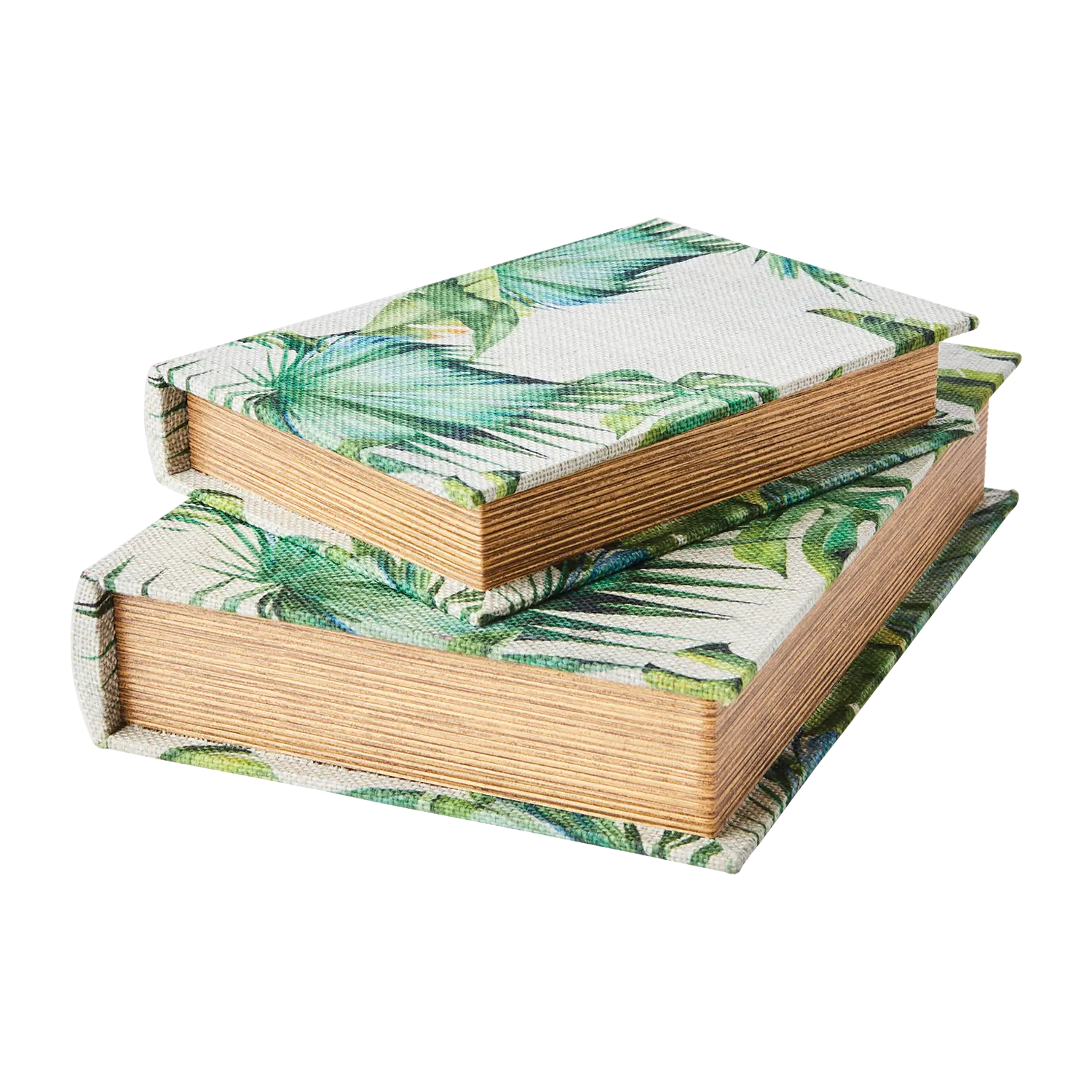 Boklåda Natur Gröna Blad Stor L27xW19xH5 cm, småförvaring som är både snygg och praktisk. Perfekt att lägga på vardagsrumsbordet och gömma tv dosan, eller i hallen och lägga ner nycklarna i. Väldigt snyggt med både en liten och en stor ovanpå varandra.