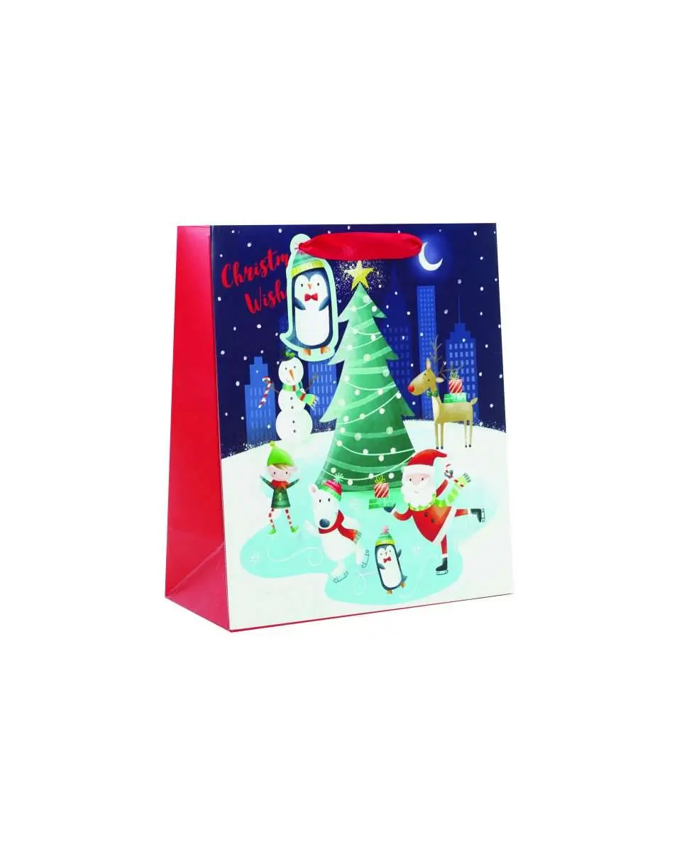 Ge dina presenter en festlig touch med denna charmiga Presentpåse Medium Festive Fun! Med en livlig design som inkluderar glada snögubbar, dansande pingviner och en strålande julgran så sprider påsen en härlig julstämning. Den är perfekt för att förpacka gåvor till både stora och små och den röda handtaget gör den lätt att bära. Låt denna påse bli en del av dina jultraditioner och skapa glädje när du ger bort dina omtänksamma presenter!