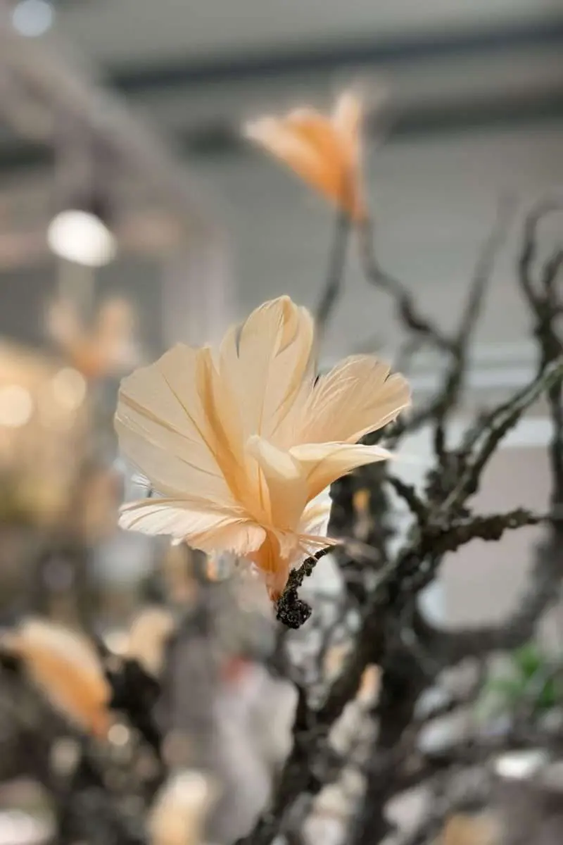 Fjäderblomma Ljus Aprikos 12st påminner om Magnolians blommor. Skira och vackra. Perfekt för dekoration av påskris, blomkrans, bukett eller annat. 3st fjädrar bildar en blomma, ståltråden gör det möjligt att fästa den i dekorationen. Enkla att fästa i björkriset eller på andra sorters kvistar. Fjäderblommorna är även fina att sätta i blomsterarrangemang, kransar, buketter, mm. Våra konstväxter är väldigt naturtrogna med hög kvalitet. Vi har ett brett utbud som passar i alla hem och självklart även i offentlig miljö. Vårt sortiment är hela tiden förändligt och anpassas efter årstider. Idag är kvaliteten på en konstväxt så pass hög att det ibland kan vara svårt att se om den är äkta eller oäkta. Konstväxter är perfekt på ställen där det är svårt att få andra växter att överleva, eller i sommarstugan där du inte är året om. Dessa växter är även den perfekta gåvan, blomman som håller för evigt, sätt ihop en fin bukett eller välj en snygg krukväxt, vi lovar mottagaren kommer bli så tacksam. Vi på Art´n Design erbjuder dig som kund ett sortiment med allt från snittblommor till stora träd.