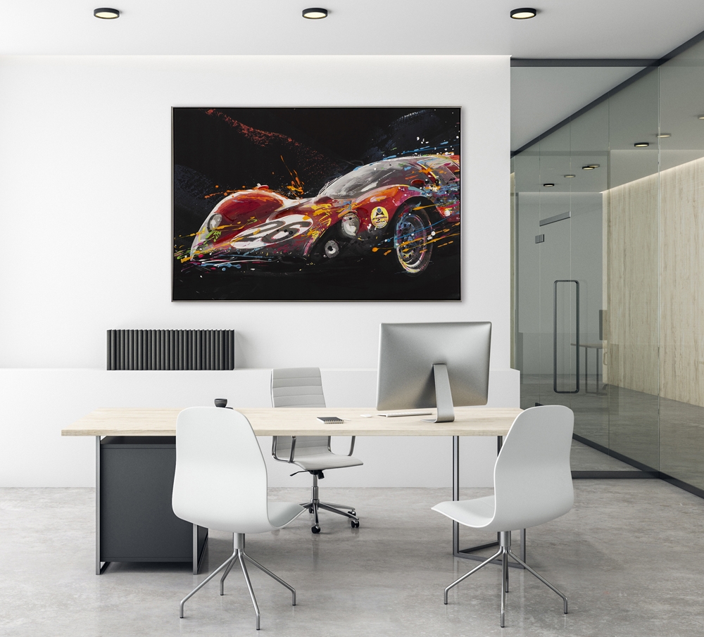 Upptäck en exklusiv, handmålad tavla som föreställer en Formel 1-bil i full fart! Denna stora väggkonst på 82.5×122.5 cm ger liv åt ditt rum och fångar motorsportens dynamik och intensitet. Med sina detaljerade penseldrag och djärva färger skapar denna tavla en stark visuell effekt, vilket gör den till ett måste för alla racingentusiaster och motorsportälskare.