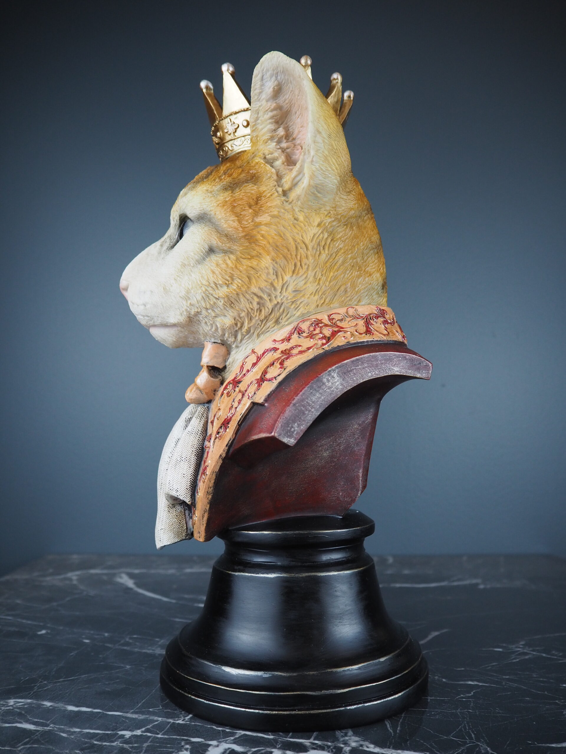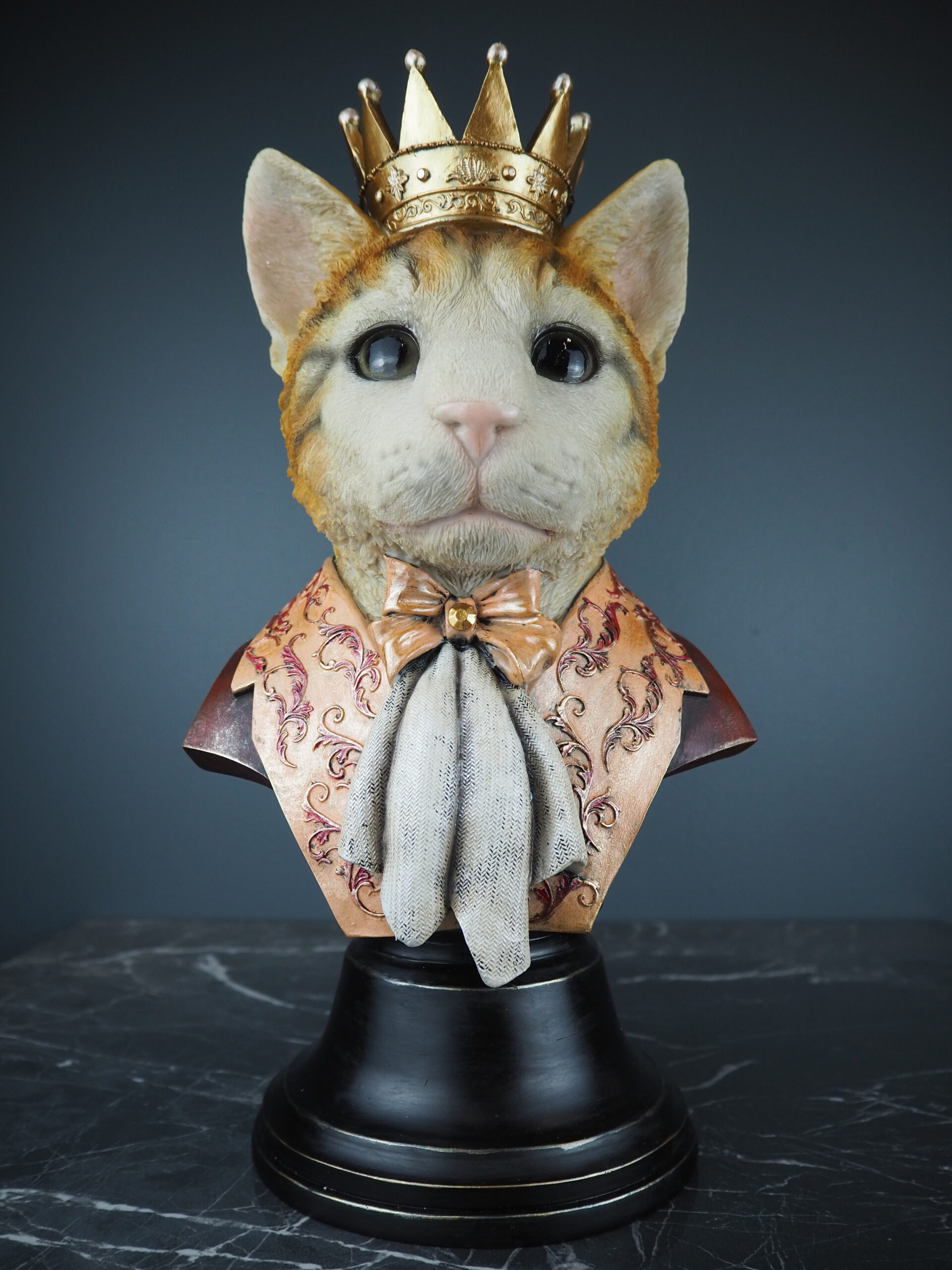 Katt Byst med Krona 19.5×18.5×37 cm – En kunglig inredningsdetalj för kattälskare