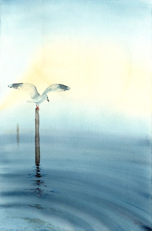 Föreställ dig att du är ute och ror med din eka, omgiven av lugnet i naturen. En fiskmås svävar på avstånd, en symbol för kommande fiskelycka. Varje paddeltag tar dig närmare naturens frid, medan de stilla vattnen speglar de fantastiska omgivningarna. Denna bild är mer än bara konst; den är en inbjudan till personlig reflektion och avkoppling.