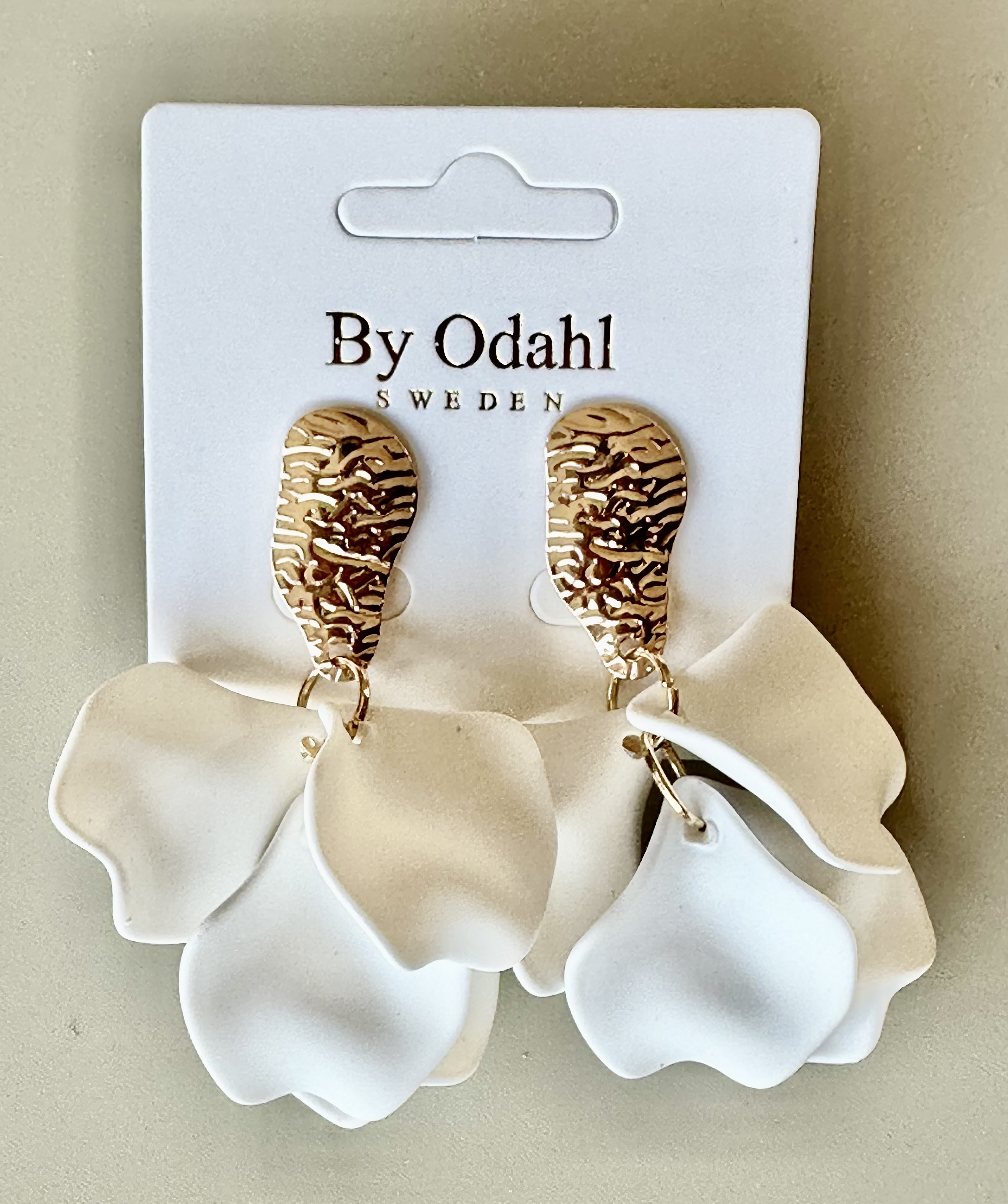 Eleganta och tidlösa örhängen med hamrad vit lövdesign