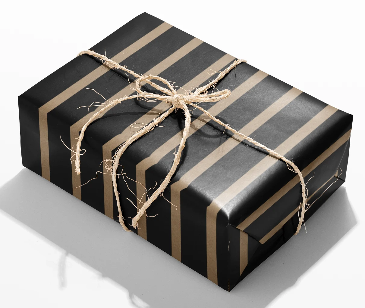 • Randigt presentpapper kraft på svart – tidlös, grafisk design.