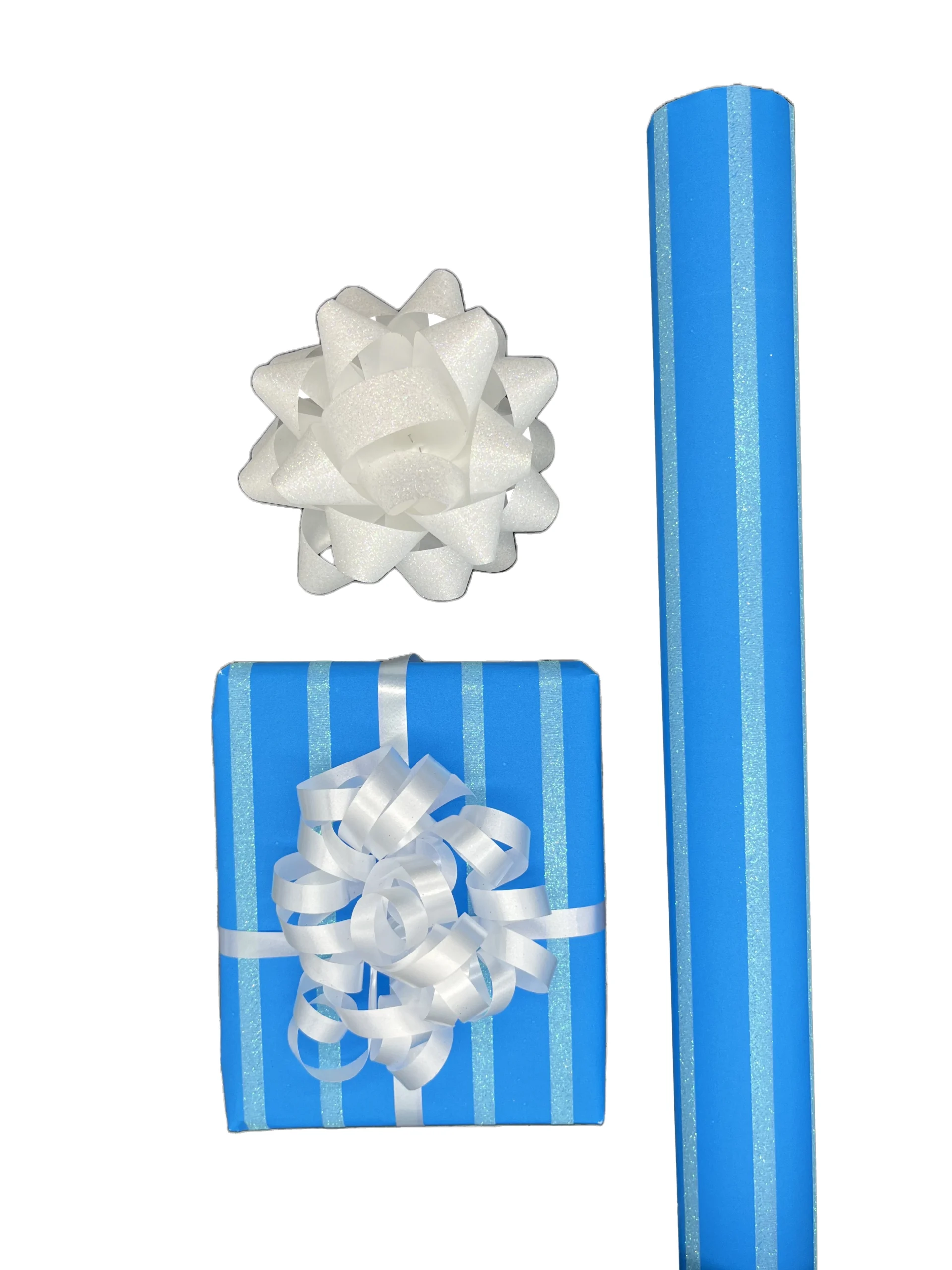 - Produktnamn: Presentpapper Glitter Neon Blå Ränder på Blå
