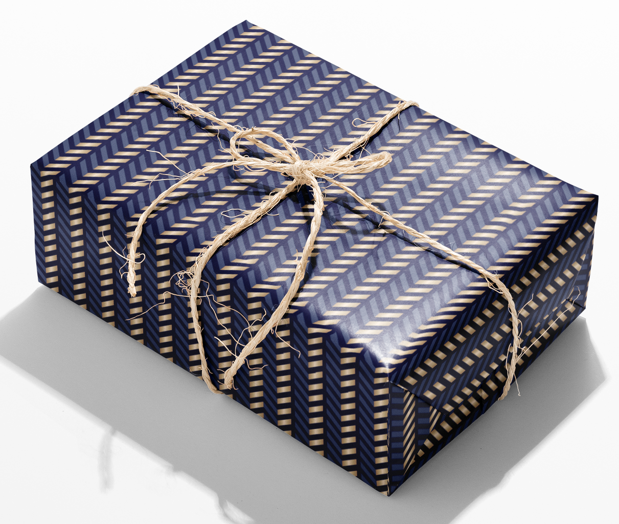 Etiketter fiskbensmönster, Presentinslagning, Presentpapper