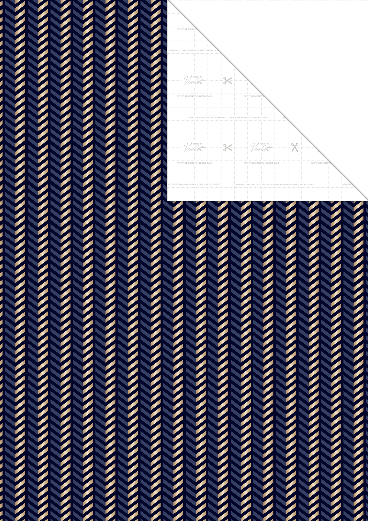 Presentpapper med fiskbensmönster – mörkblå kraftpapper 70×200 cm