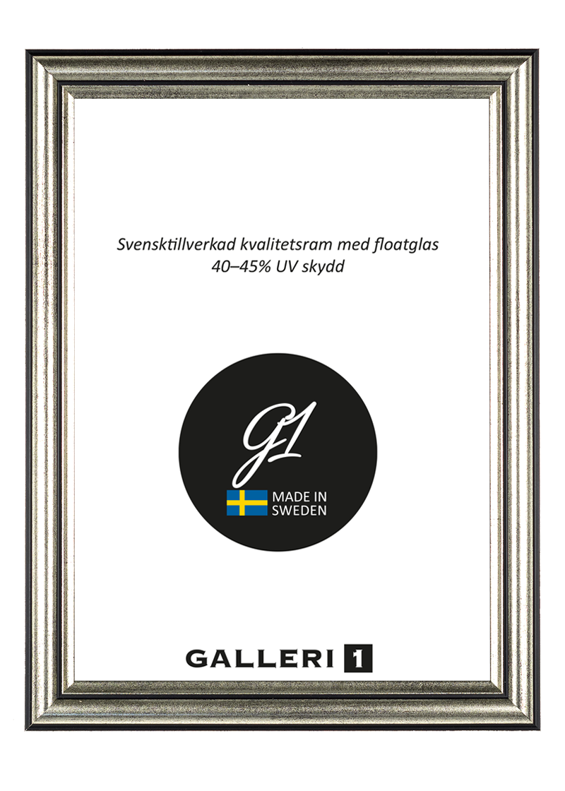 Ram Profil Smal Silver Antik är en stilren och sofistikerad ram i antik silverfinish som tillför en klassisk touch till dina bilder och konstverk. Den smala profilen ger ett diskret men elegant intryck vilket som är perfekt för både modern och traditionell inredning. Silver ramen är svensktillverkad med högkvalitativa material och floatglas som ger 40–45% UV-skydd vilket som hjälper till att skydda dina bilder mot blekning. En utmärkt ram för att framhäva dina mest älskade motiv med tidlös elegans.