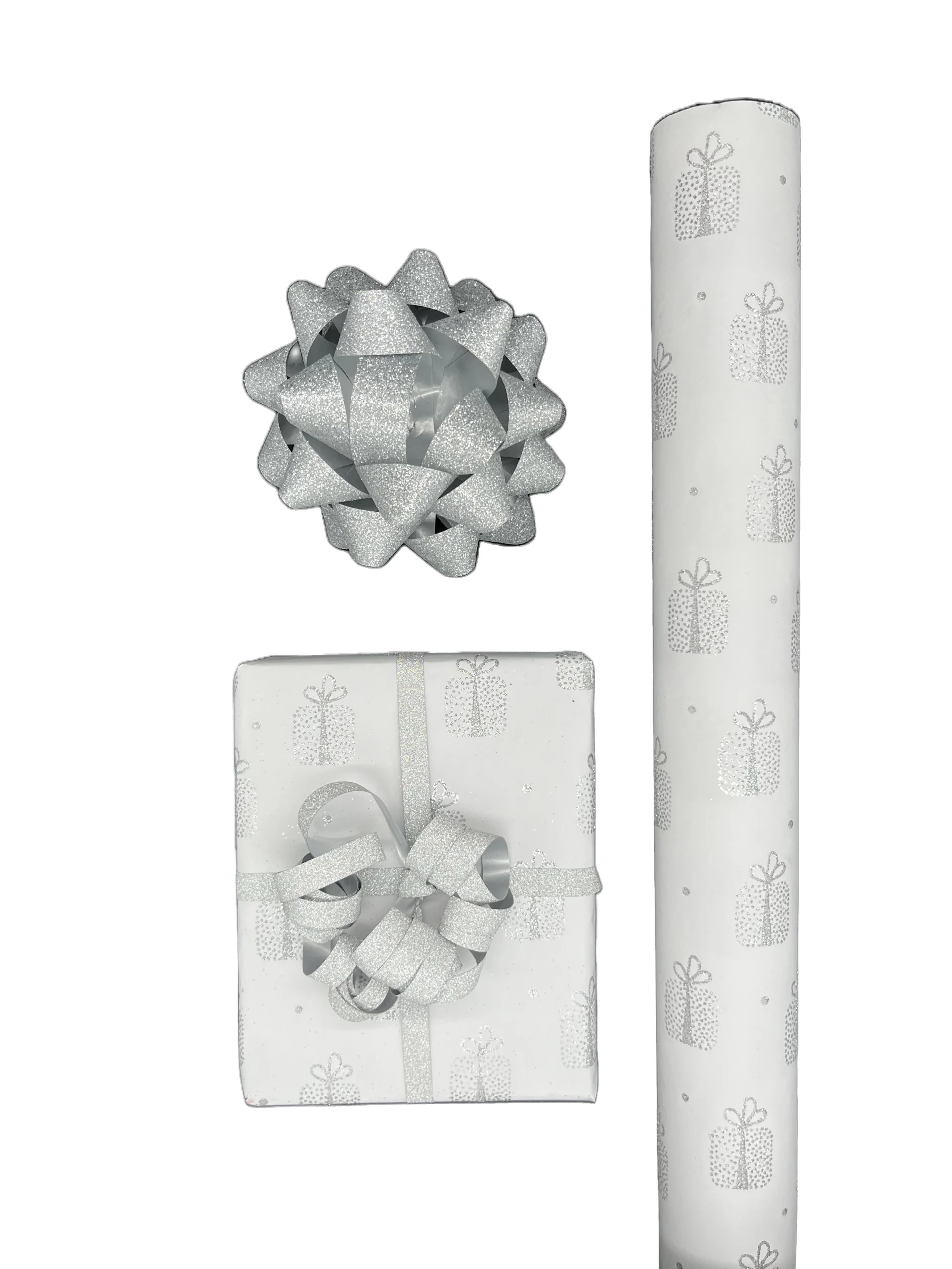 Vare sig du är en presententusiast, eventplanerare eller bara älskar att lägga till det lilla extra i ditt vardagsliv, är vår ”Rosett Glitter Silver Maxi Ø12,5cm” det perfekta valet för att skapa ett minnesvärt och visuellt slående intryck.