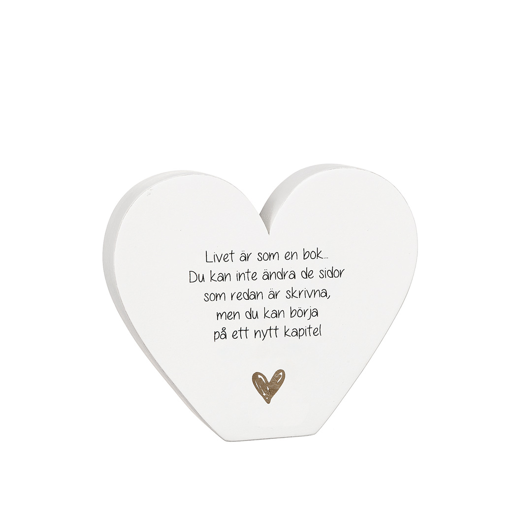 Stående Hjärta i Trä ”Livet är som en bok…” 15 cm – En tänkvärd och vacker inredningsdetalj