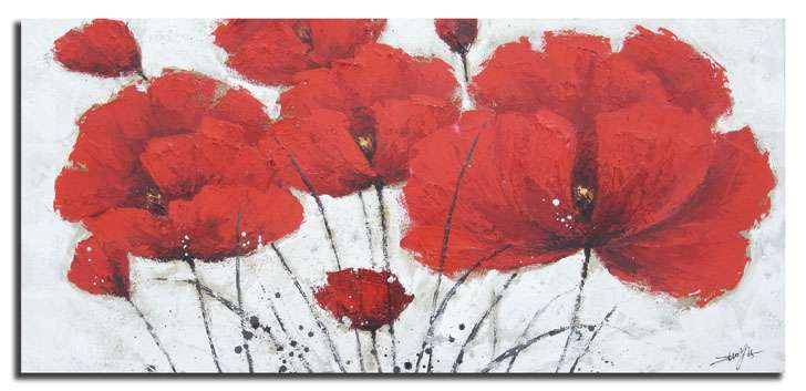 Title: Handmålad Tavla – Ståtliga Röda Blommor 148×48 cm