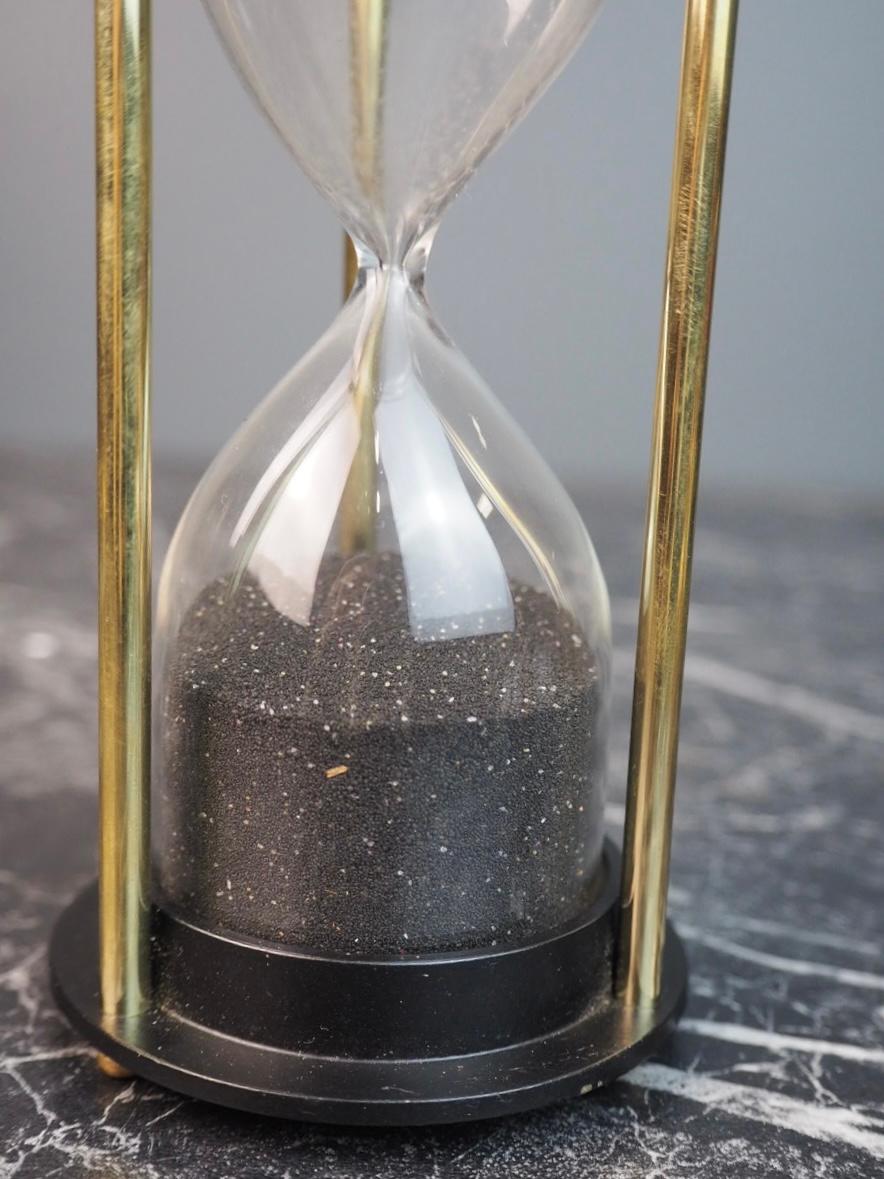 Elegant timmglas i mässing och svart, perfekt för att mäta tid med stil. 14,5×6,5 cm.