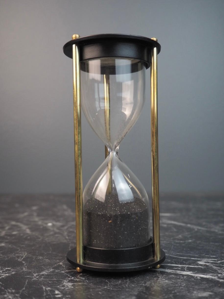 Detta timmgas är designat med en kombination av högkvalitativt glas och hållbar mässing, vilket ger en känsla av lyx och tidlöshet. Den svarta basen ger en modern touch som kompletterar den klassiska designen. Oavsett om du använder det för att mäta tid under en paus, för att sätta en timer för studier eller bara som en dekorativ prydnad, kommer detta timmgas att dra blickarna till sig.