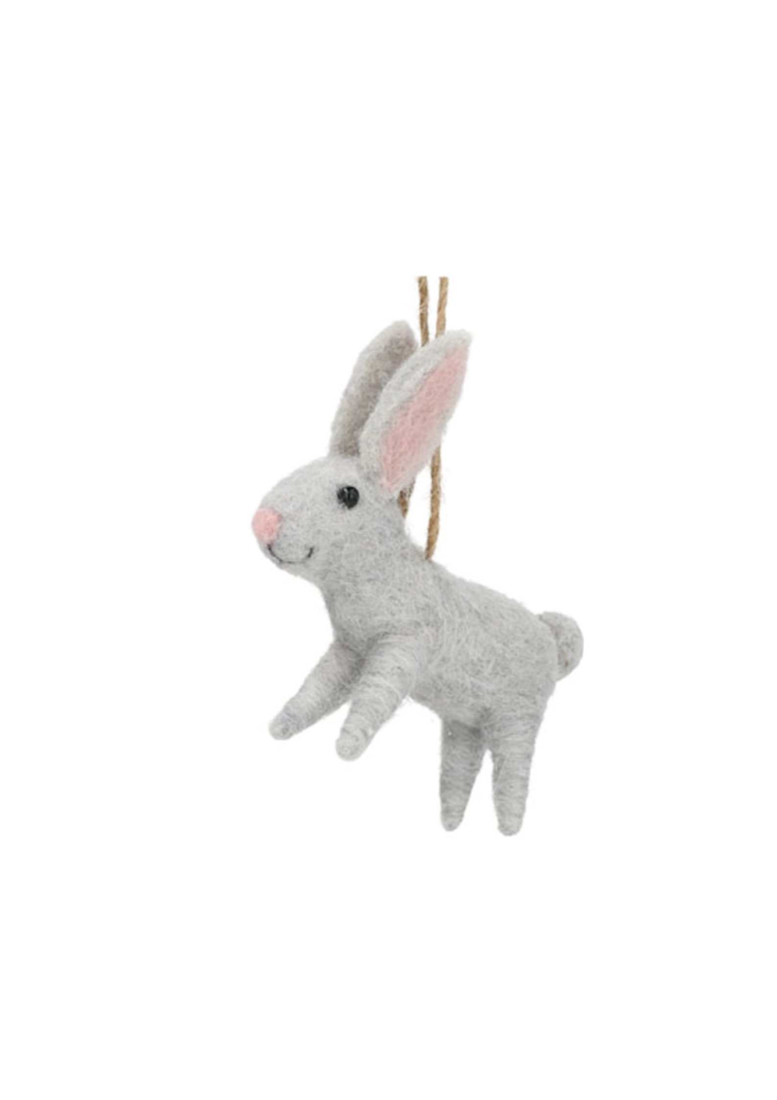 Ulldjur kanin 7x7x2cm är en liten, filtad ullfigur som fungerar som dekorativt hänge. Den mjuka grå nyansen med rosa innereye och näsa gör att kaninen ger ett varmt intryck i både hyllor och kransar.