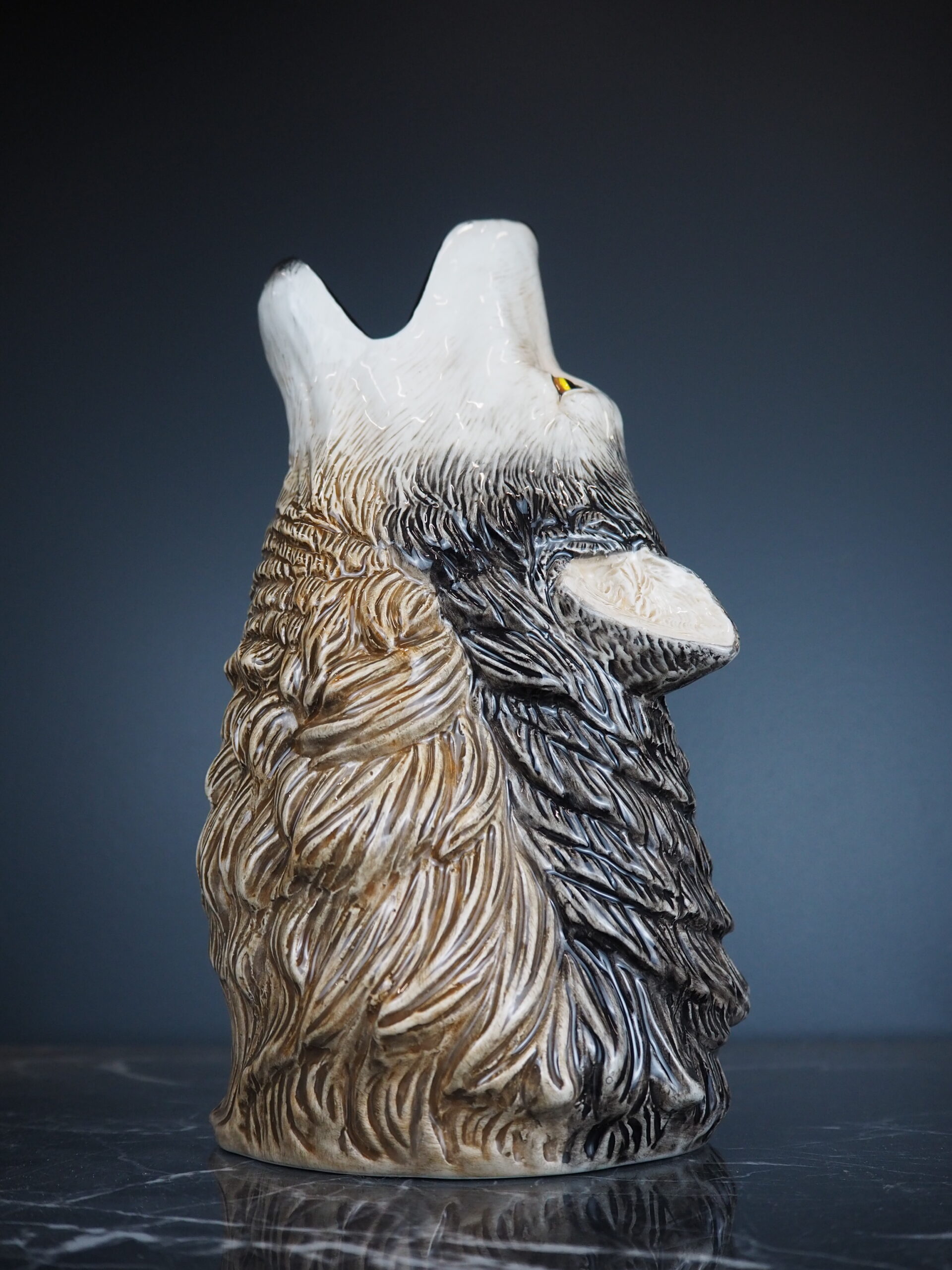 Design: En vas i form av en varg, med detaljerad och realistisk design som ger liv och karaktär till rummet.
